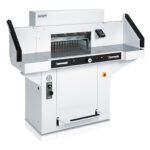 De origem alemã. Calcador e corte hidráulicos. Programação de corte. Protecção de mãos do operador através de células fotoeléctricas. Avanço e recuo do encosto automático. Indicação das medidas de corte digital. Equipada com mesa de ar.