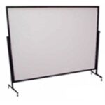 Ecran de montagem e desmontagem fácil. Ligado entre si através de encaixe com aperto. Construído em alumínio lacado a preto. Tela certificada M1. Pés com 4 rodas de borracha. As medidas apresentadas são as da área de projecção. O ecran tem mais 10 cm de largura e 10 cm de altura.