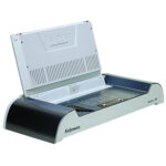 Vários documentos podem ser presos ao mesmo tempo maximizando a velocidade e eficiência. A guia de tamanho do documento permite que o utilizador facilmente seleccione o ciclo de trabalho correcto. Heatshield Safety Barrier impede o contacto acidental do utilizador com a placa de aquecimento. Indicador visual e sinal audio quando estiver pronto para encadernar. Modo de suspensão é activado após períodos de inactividade, reduzindo o consumo de energia e garante uma operação segura. Dobras planas para armazenamento. Refrigeração na traseira.