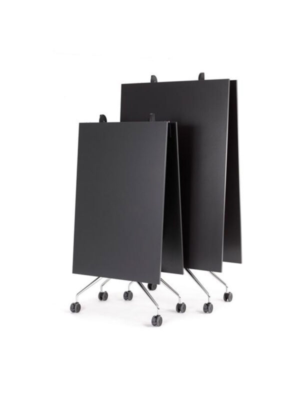 O seu atributo chave é o seu tampo dobrável, que permite dimensões generosas, e capacidade de empilhamento: o manuseio e empilhamento, tanto horizontal ou vertical, permite uma melhor utilização dos espaços, tornando-a perfeita para escritórios, salas de conferências e multiusos, etc.