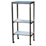 3 pratos de trabalho. Tomada de corrente tripla com terra. Cabo de alimentação com 5 metros. Pés rodados, 2 rodas com travão.