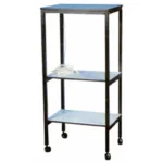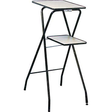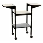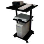 Mesa concebida para um projector de video, um teclado e um rato no tampo superior. Um videogravador ou um DVD no tampo intermédio. Um CPU no tampo inferior. Pode aparafusar todo o material à mesa. 3 pratos de trabalho. Pés rodados, 2 rodas com travão.