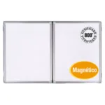 Quadros com caixilho de alumínio de 1.5cm, com interior de 0.9cm, robustos. Todos os quadros têm os cantos de proteção ergonómicos e proteção na calha de alumínio porta marcadores em PVC por motivos de segurança, conforme as normas da CE. Contra face anti-humidade e anti-empenamento.