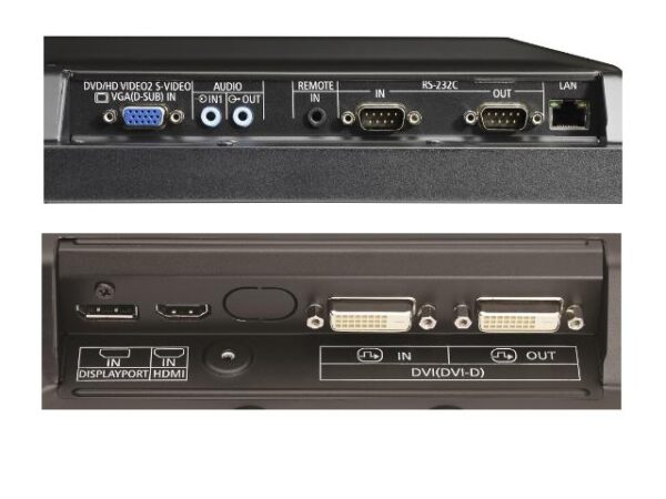 Conectividade (varia consoante o modelo) : HDMI, DP, DVI-D In/Out, VGA; DP In/Out, HDMI, DVI-D, VGA